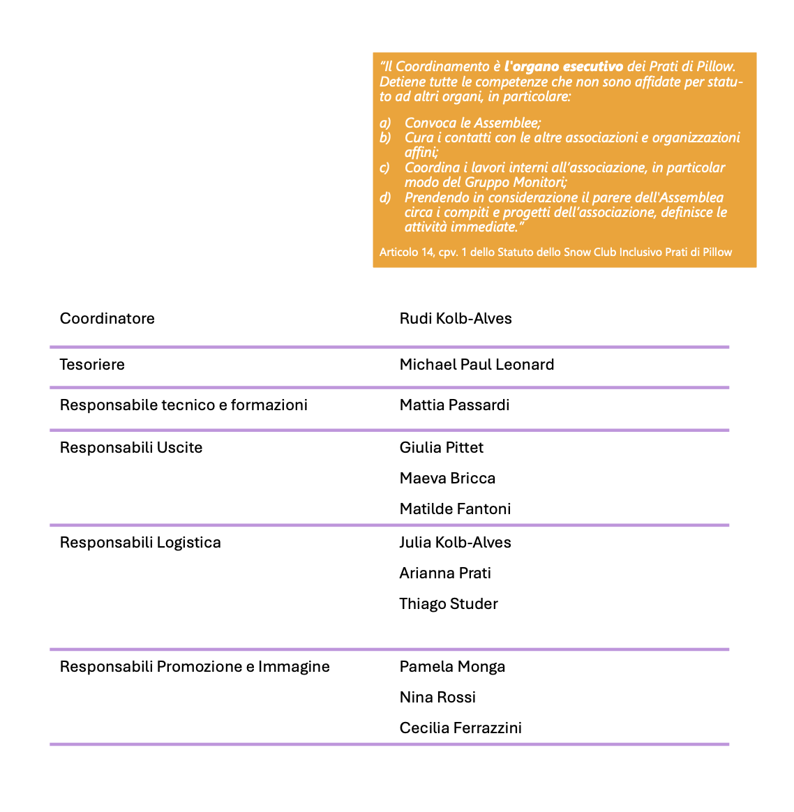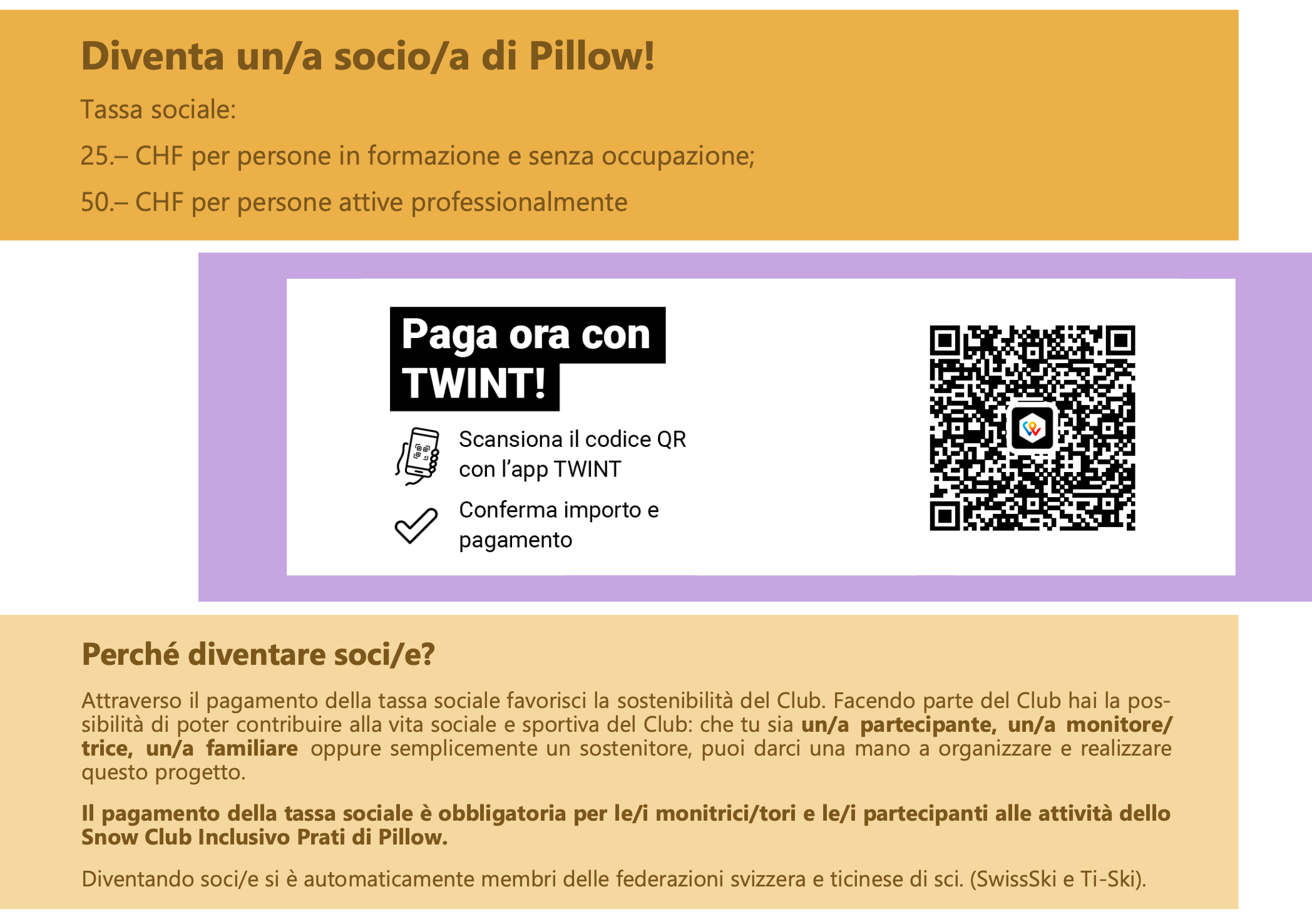 Lo Snow Club Inclusivo Prati di Pillow promuove gli sport sulla neve con un approccio realmente inclusivo, pensato per ogni partecipante. Crediamo che sci e snowboard siano strumenti per favorire autodeterminazione, partecipazione einclusione sociale, valorizzando ogni persona senza giudizi.