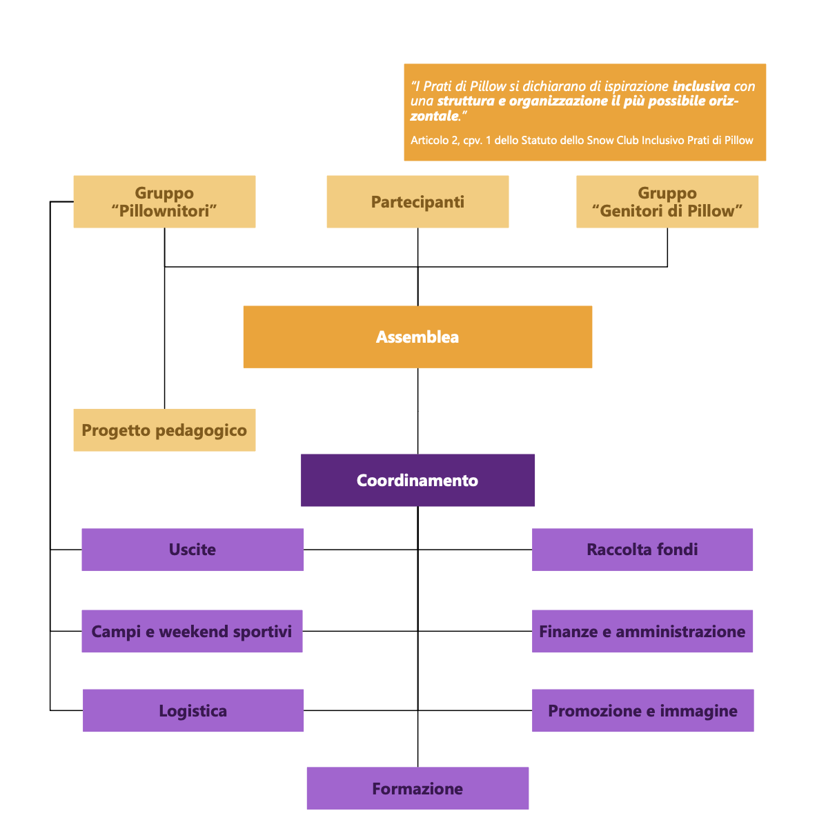 Le attività dei Prati di Pillow sono inclusive perché basate sugiochi e lezioni di gruppo accessibili, rivolte a un gruppo misto composto da partecipanti neurodivergenti e neurotipici in numero equilibrato. Non solo superiamo gli ostacoli che possono rendere difficile l’apprendimento dello sci o dello snowboard: vogliamo anche abbattere le barriere sociali e mentali che limitano la relazione tra pari e creare legami di amicizia autentici e duraturi!